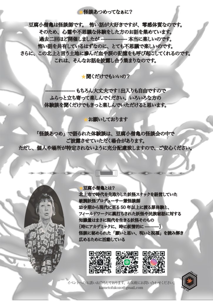 【ジョイン ≪参加≫】怪談師 豆腐小僧亀 Presents [怪談集め]in さくらホール