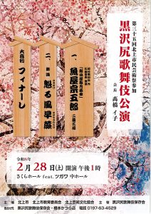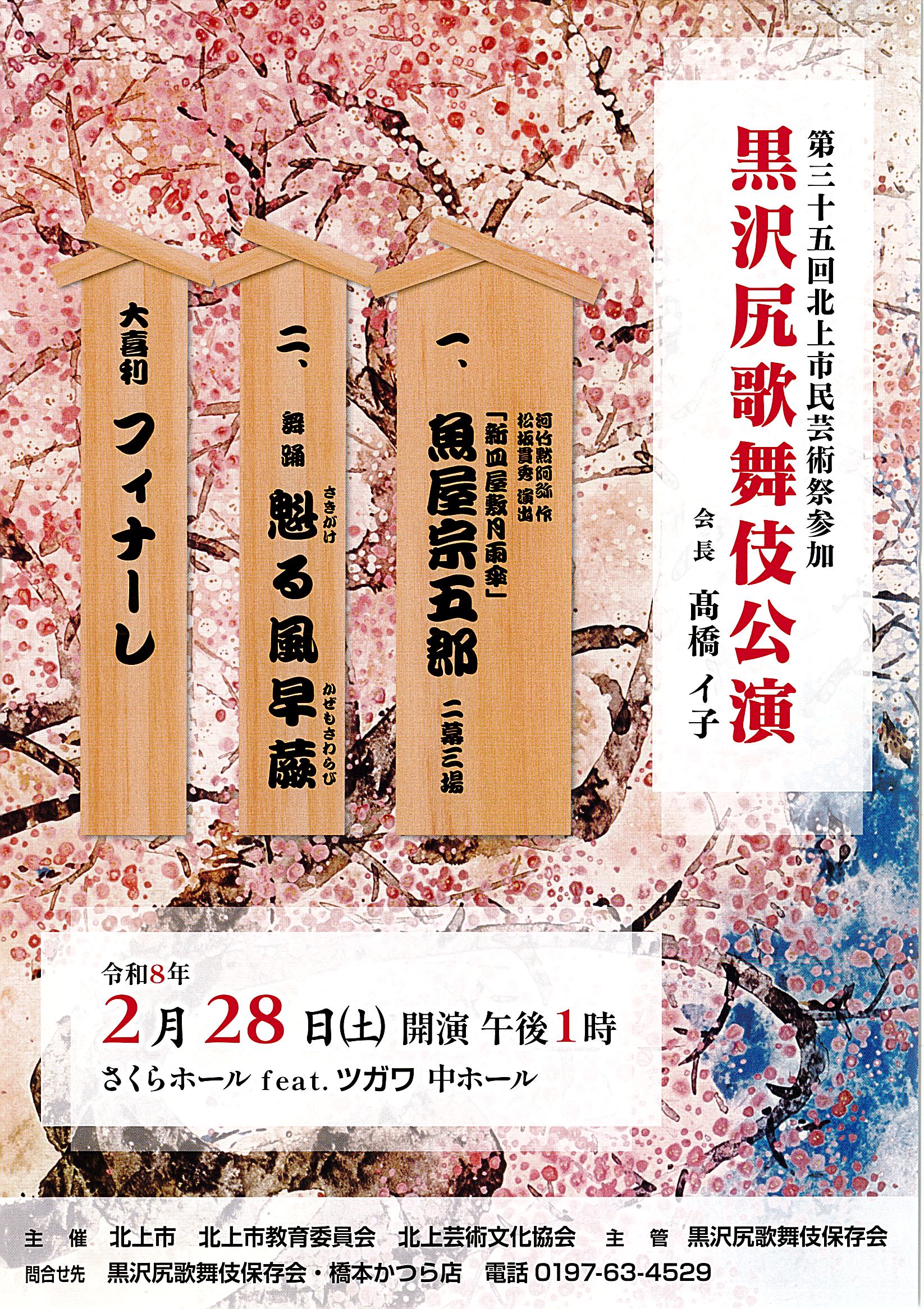 黒沢尻歌舞伎公演開場12:00 開演13:00 終演16:00全席自由一般前売2,000円 当日2,300円